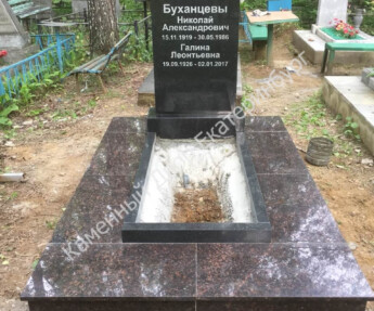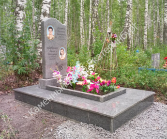 Памятник из Дымовского гранита с надгробной плитой на цветнике
