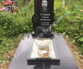 Памятник резной с крестом из габбро